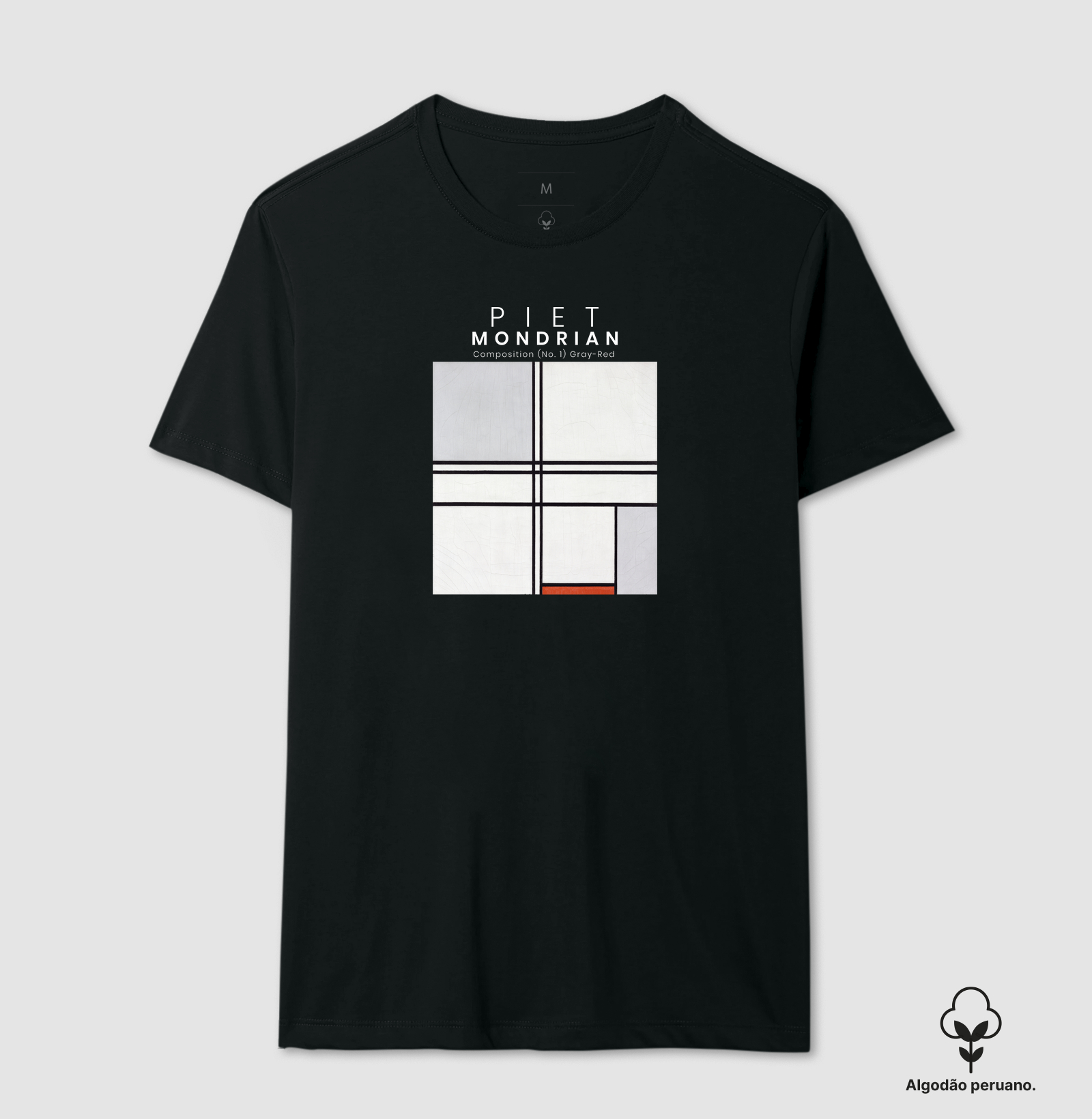 Estampa Mondrian - Composition Gray-Red (1935) Características: Tecido 100% algodão Premium de alta qualidade Impressão durável e detalhada Disponível em vários tamanhos Benefícios: Conforto e estilo em uma só peça Uma maneira única de expressar seu amor pela arte Perfeita para todas as ocasiões Piet Mondrian Piet Mondrian (1872-1944) foi um pintor abstrato holandês, amplamente considerado um dos maiores artistas do século XX. Ele foi um dos fundadores do jornal e movimento artístico De Stijl. O movimento foi baseado na teoria reducionista, na rejeição completa da realidade percebida visualmente como assunto. Através desta publicação Mondrian foi pioneiro no termo Neoplasticismo, uma forma de arte que utiliza apenas linhas verticais e horizontais com cores primárias: “arte na forma mais pura e fundamental”. Suas pinturas abstratas em cores primárias influenciaram a Bauhaus e recentemente voltaram à moda na decoração de interiores, no design gráfico e no vestuário com as estampas que selecionamos para você.