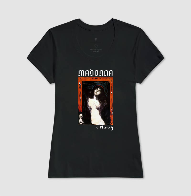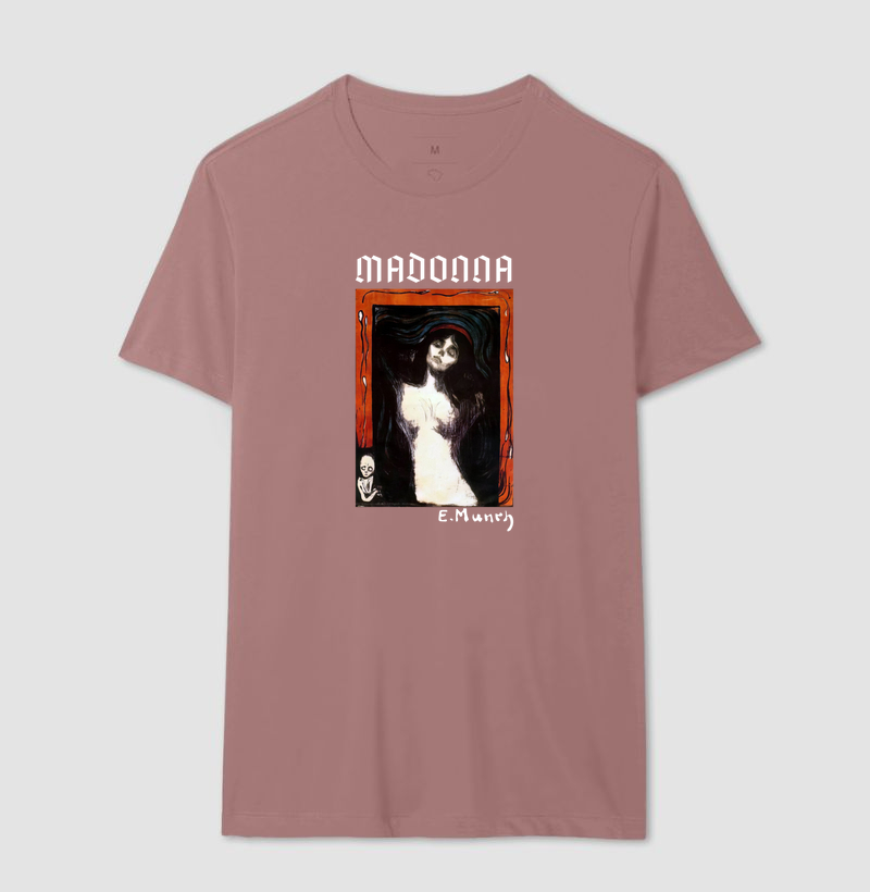 Estampa Madonna (1894) by Edvard Munch. Características: Tecido 100% algodão Premium de alta qualidade, Impressão durável e detalhada. Disponível em vários tamanhos. Benefícios: Conforto e estilo em uma só peça, uma maneira única de expressar seu amor pela arte. Perfeita para todas as ocasiões.