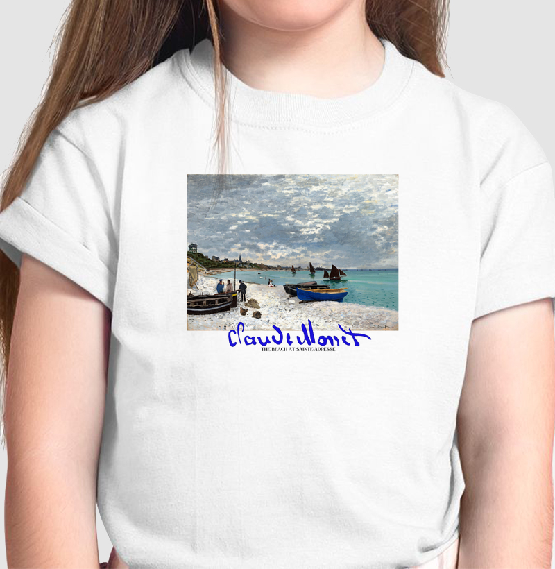 Estampa The Beach at Sainte-Adresse (1867) - Claude Monet. • Características: Tecido 100% Algodão Premium ou Algodão Peruano (Melhor Algodão do Mundo), qualidade Reserva, empresa do grupo Arezzo. • Estampa em Impressão Digital, tecnologia DTG, durável e detalhada. Disponível em vários tamanhos. Benefícios: • Conforto e estilo em uma só peça. • Uma maneira única de expressar seu amor pela arte. • Perfeita para todas as ocasiões.