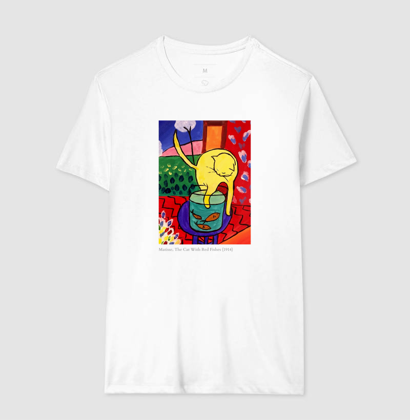 Estampa Le Chat Aux Poissons Rouges 1914, (The Cat With Red Fishes) por Henri Matisse. Características: Tecido 100% algodão Premium de alta qualidade Impressão durável e detalhada Disponível em vários tamanhos Benefícios: Conforto e estilo em uma só peça Uma maneira única de expressar seu amor pela arte Perfeita para todas as ocasiões. Henri Matisse, nascido em 1869, em uma pequena comuna francesa chamada Le Cateau-Cambrésis, começou a pintar aos 20 anos. Em seus primeiros trabalhos, ele começou a explorar as cores e suas infinitas possibilidades inspirado pelas obras do pintor pós-impressionista Paul Cézanne. No início dos anos 1900, com mais de uma década de carreira, Matisse já demonstrava os primeiros traços de um movimento que seria inconfundível no futuro e que mudaria o rumo da História da Arte. No salão de outono de 1905, ele expôs, pela primeira vez, a tela Mulher com chapéu, pintada naquele mesmo ano. Louis Vauxcelles, renomado crítico de arte da época, teceu um fervoroso texto de repúdio às obras que haviam sido apresentadas na ocasião, dentre as quais estava a tela de Matisse. Para qualificar aquilo que Vauxcelles julgava ser horrível, ele usou a palavra francesa “fauves”, que significa em português “feras” e os responsáveis pelas detestáveis obras não poderiam ter ficado mais satisfeitos. Os artistas de vanguarda eram rebeldes por natureza. Ir contra o cânone impressionista vigente à época, inovar as técnicas, chocar o público e recriar a cena artística era, para eles, um sonho que se tornava realidade. Em seguida à crítica, os próprios artistas passaram a se chamar de “Fauvistas” e o “Fauvismo”, uma das mais aclamadas vanguardas artísticas do século XX, acabava de nascer. No Fauvismo, a investigação das cores e suas capacidades era a prioridade absoluta, para os fauvistas a cor era forma, modelagem e expressão de sentimento.